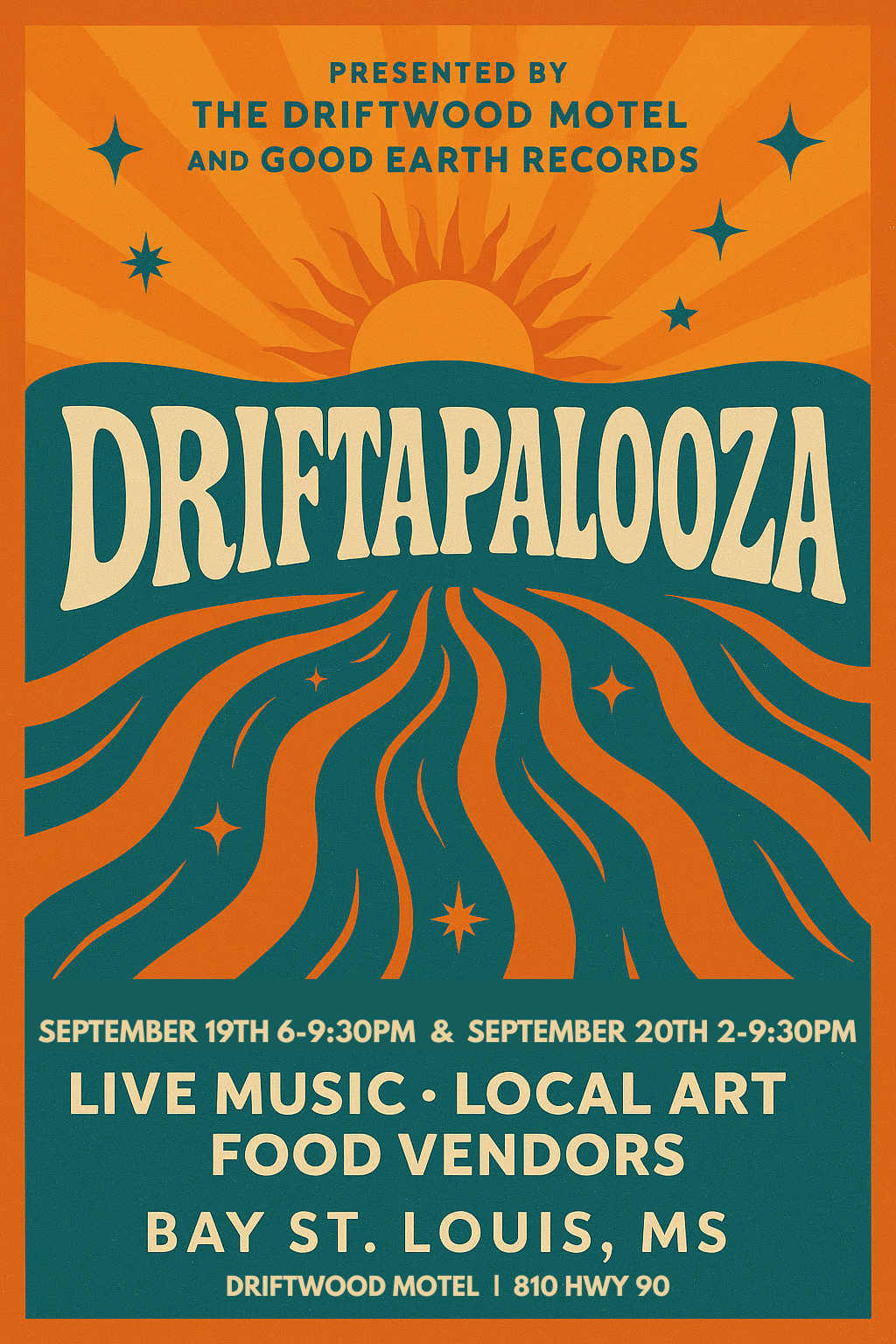 Get ready for a weekend of live music, art, food, and good vibes at The Driftwood Motel! Driftapalooza brings together local bands, vendors, and food trucks for two full days of fun in the heart of Bay St. Louis.